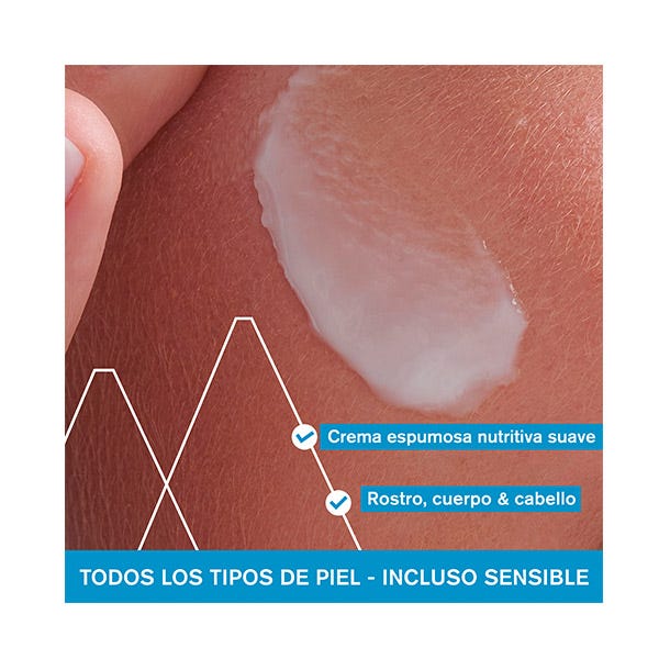 Su base limpiadora sin jabón de pH fisiológico, elimina suavemente todas las impurezas.