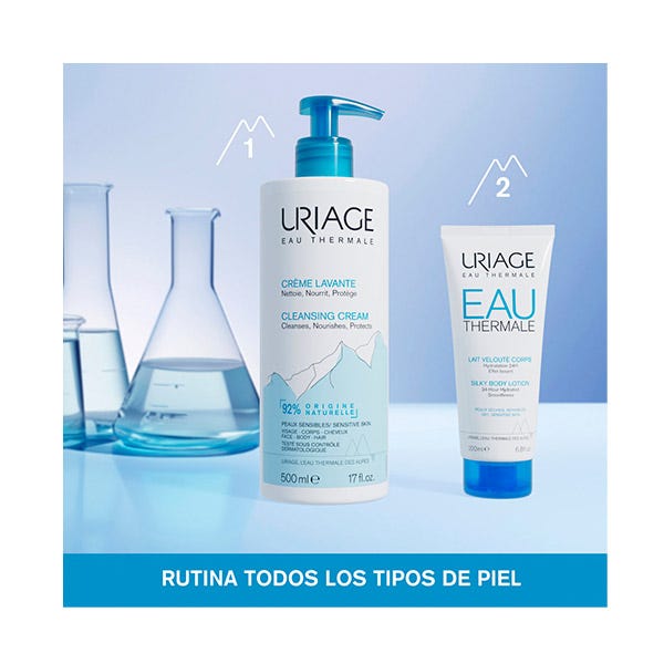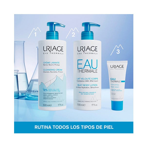 Gracias al Agua Termal de Uriage, hidratante y protectora, preserva la película hidrolipídica de la piel.