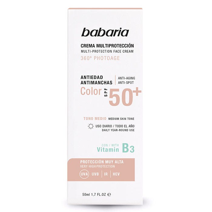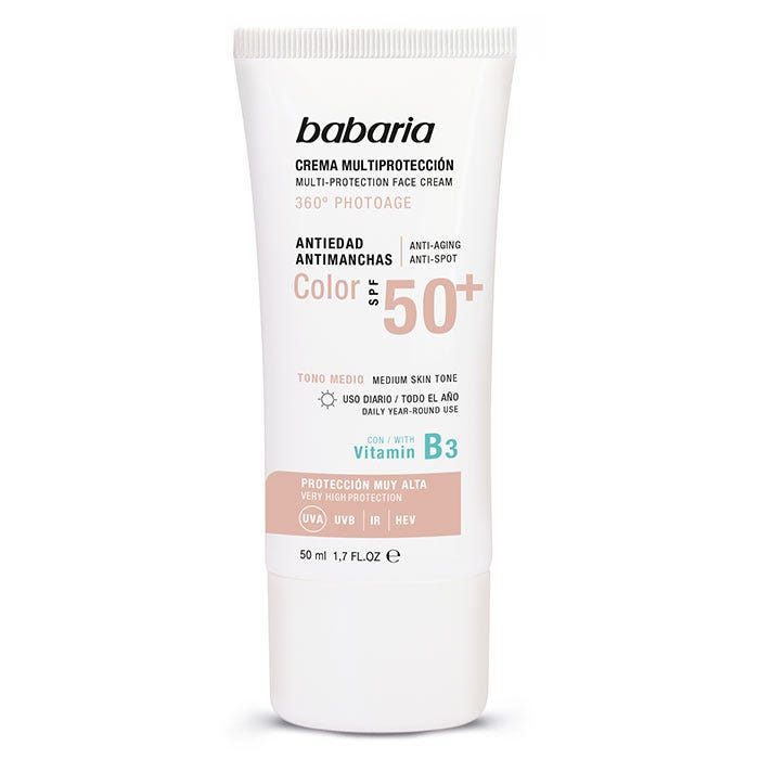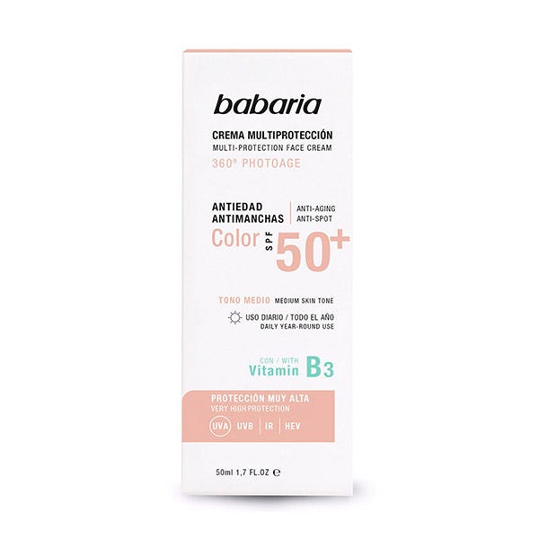 Crema facial multiprotectora antiedad y antimanchas de uso diario con color que unifica y aporta un tono natural a la piel.