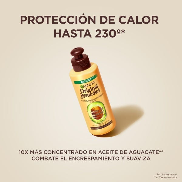 Nuestra fórmula icónica ahora 10x más concentrada en Aceite de Aguacate* y enriquecida con Manteca de Karité. Nutre intensamente, suaviza los rizos y combate el encrespamiento, Protección contra el calor hasta 230ºC**, Formulado para todo tipo de rizos,