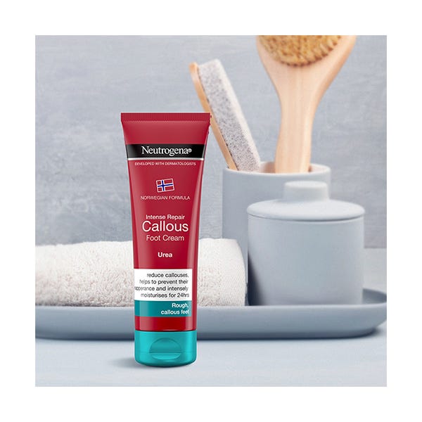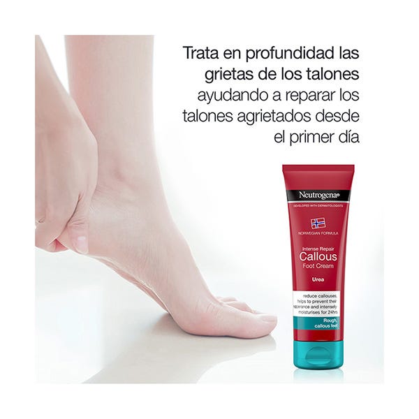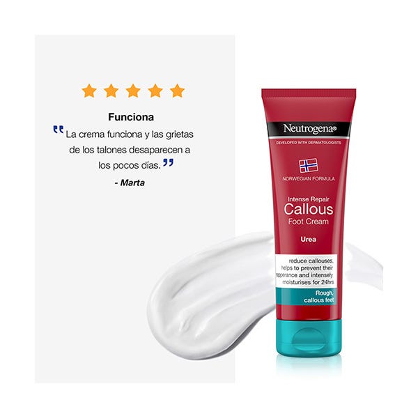 La Crema Pies Durezas de Neutrogena® reduce las durezas e hidrata intensamente. Además, se absorbe rápidamente, sin manchar ni dejar sensación grasa.