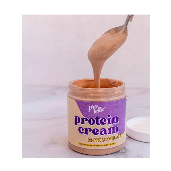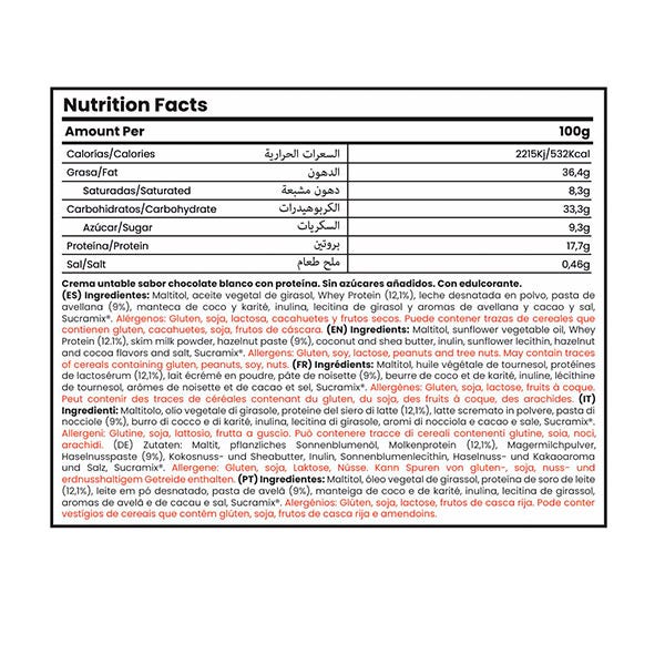 Protein Cream White Chocolate es una crema de chocolate blanco con avellanas tostadas que nos dará un aporte extra de energía.