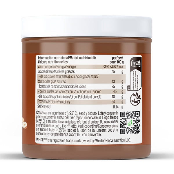Whey Protein Creme es una deliciosa crema de chocolate blanco para untar elaborada con auténticas avellanas y proteína de suero de alta calidad, ideal para regalarte un momento de placera la vez que cuidas tu figura. Además, esta nueva versión mejorada no contiene aceite de palma.
