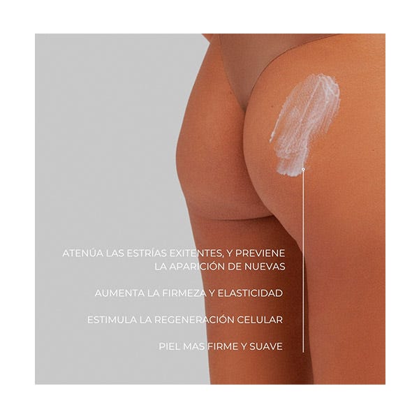Crema corporal específica para prevenir y reducir estrías. Con CICA, rosa mosqueta y cola de caballo, mejora la firmeza, elasticidad y apariencia de la piel. Ideal para embarazo, cambios de peso o crecimiento.