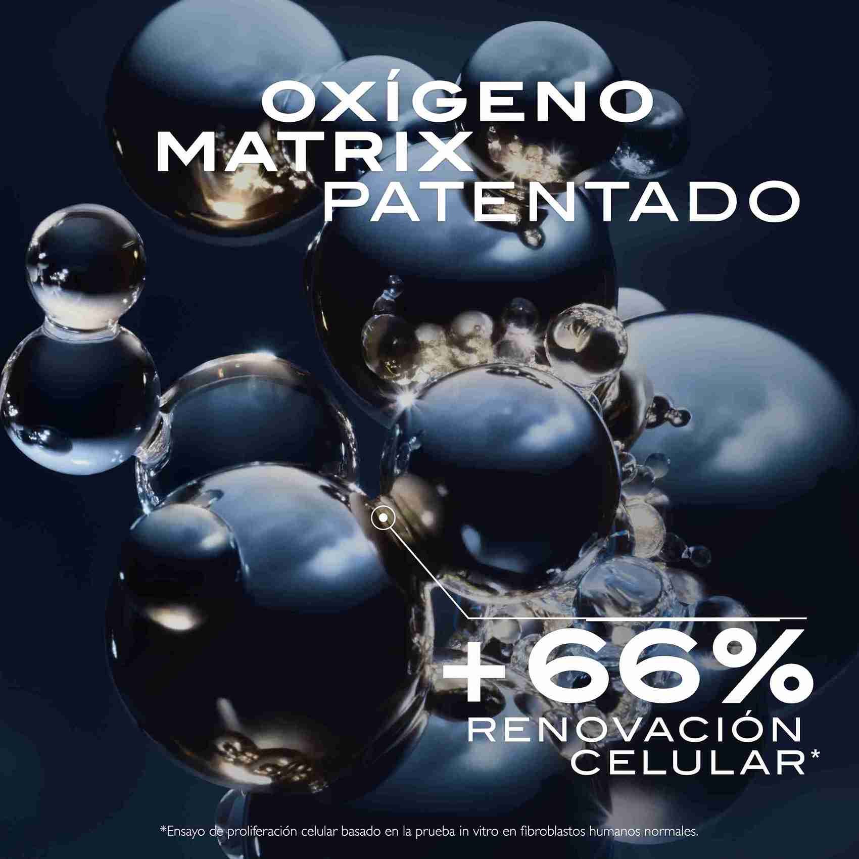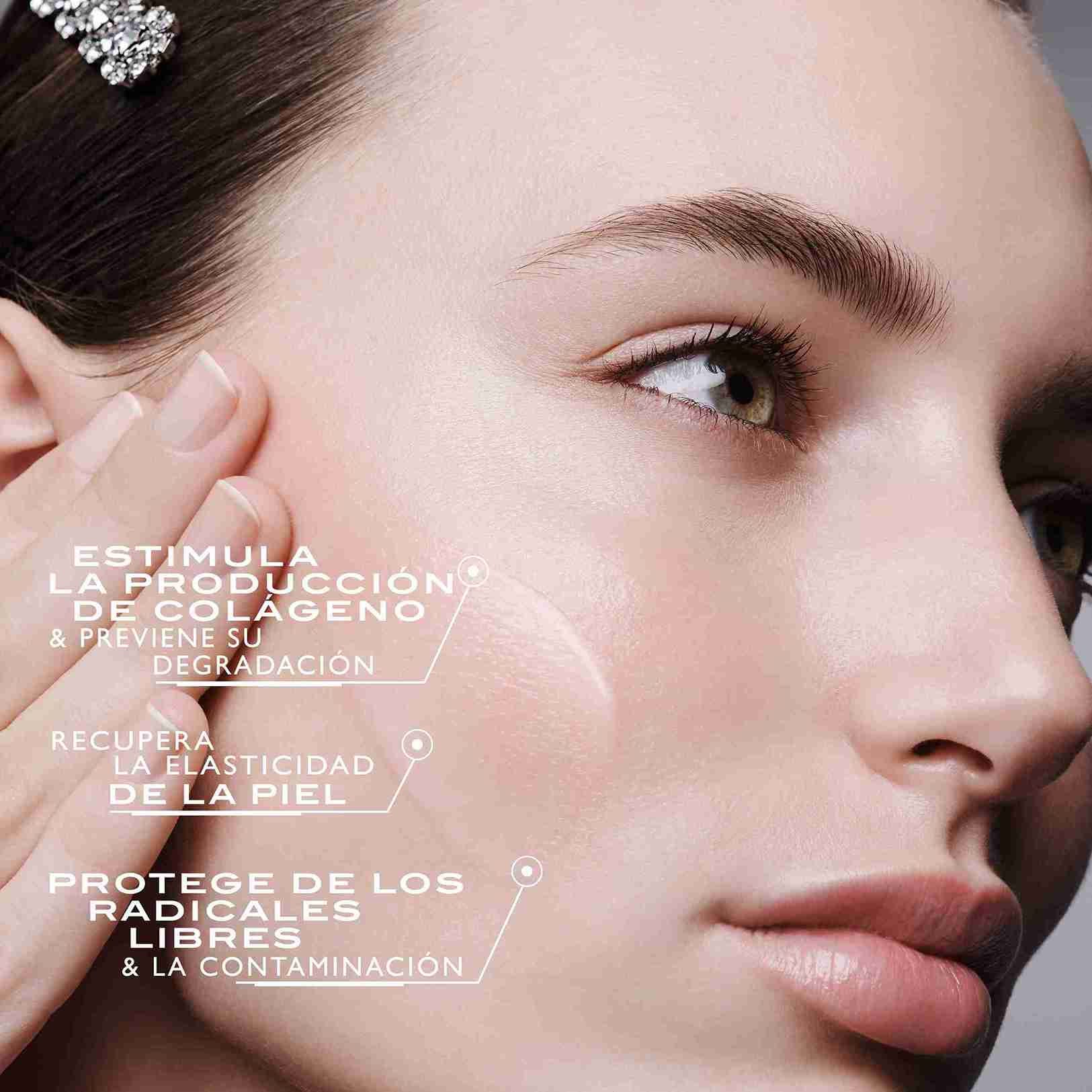 Esta crema facial, que combate 8 daños causados por el fotoenvejecimiento*, está enriquecida con tecnologías R.O.E. multipatentadas. El Retinol Liposomal Catiónico (R) potencia la producción natural de colágeno de la piel, el Oxígeno en Matriz (O) ayuda a renovar las células de la piel, y las Enzimas Liposomales Dobles Reparadoras de la Piel (E) ayudan a reparar los daños de origen múltiple en el núcleo de las células y aceleran la capacidad de autorreparación de la piel. El péptido que promueve la elasticidad y el péptido potenciador del colágeno también ayudan a remodelar el rostro. Para reforzar aún más la barrera cutánea y calmar la piel, esta crema hidratante de día incluye VitE-Mega, que ayuda a protegerla de los contaminantes y los radicales libres.