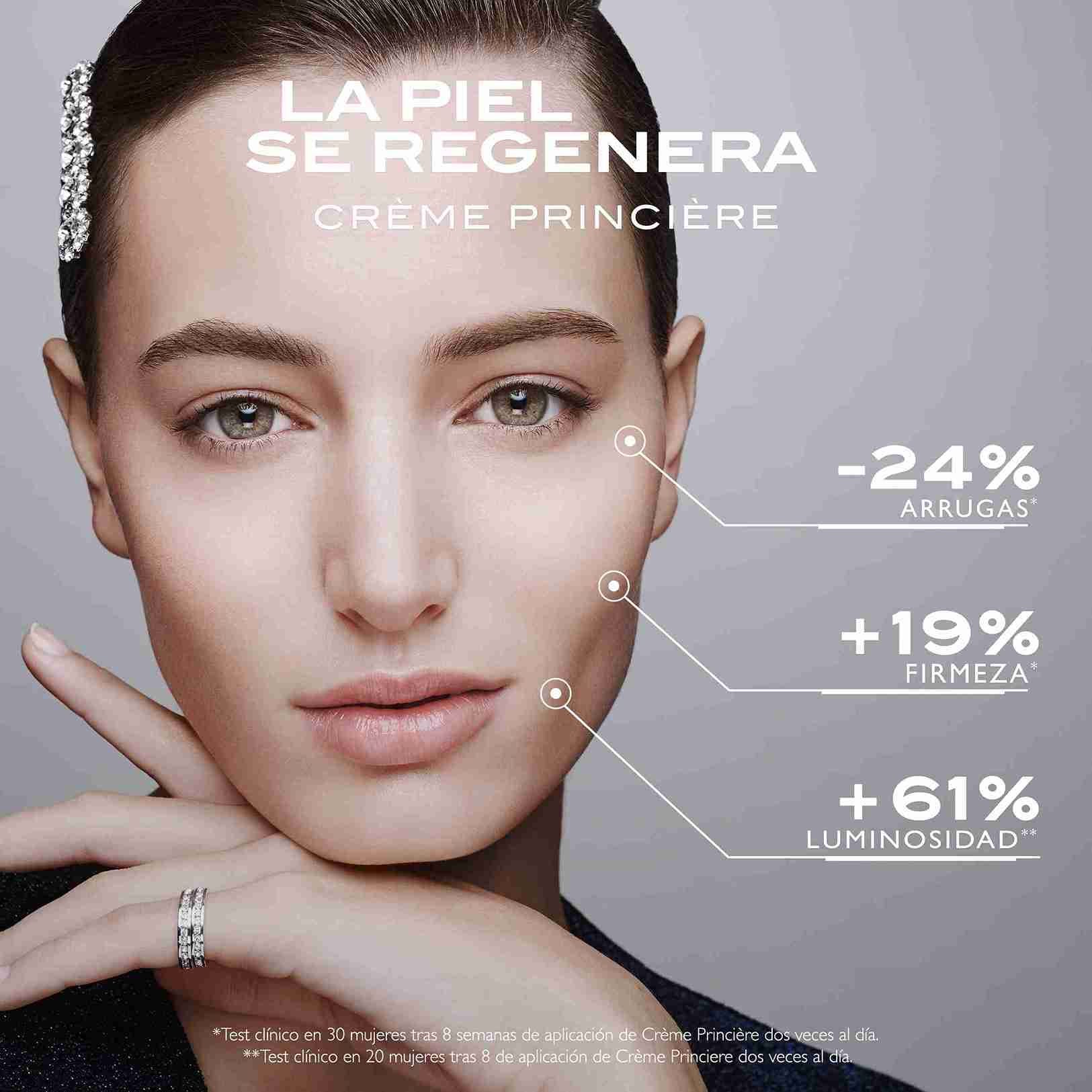 Con una estructura de crema laminar que imita la estructura multicapa de la piel, garantizando así un efecto de fusión instantáneo tras la aplicación, este producto reúne la voluptuosidad de una crema regeneradora y el toque fresco de un gel reparador. Crème Princière, que se presenta en un frasco de vidrio de 50 ml, está perfumada con la fragancia floral característica de la línea para evocar tanto su exquisitez como el cuidado de la piel de alta tecnología que ofrece y actuar como un guiño a la elegancia de la Costa Azul de Mónaco.