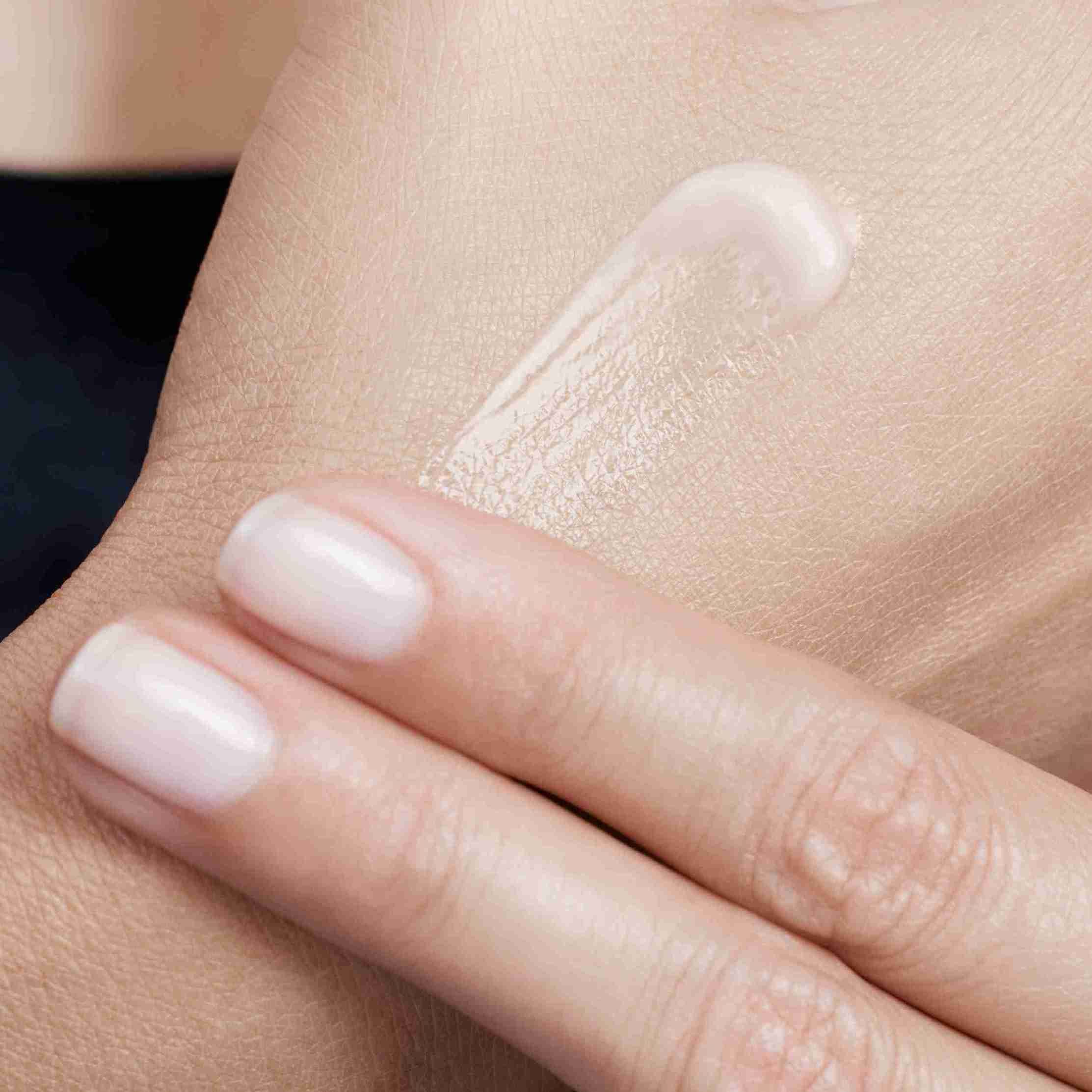 Cubrir el rostro con las manos y extender la crema desde el centro hacia el exterior.|Repetir el mismo movimiento en el cuello, alisando la piel hacia arriba, hacia el mentón, con movimientos alternados.