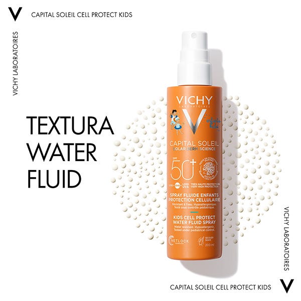 Kids Cell Protect Water Fluid Spray protege del daño producido por el sol al nivel de las células de la piel.SPF 50+