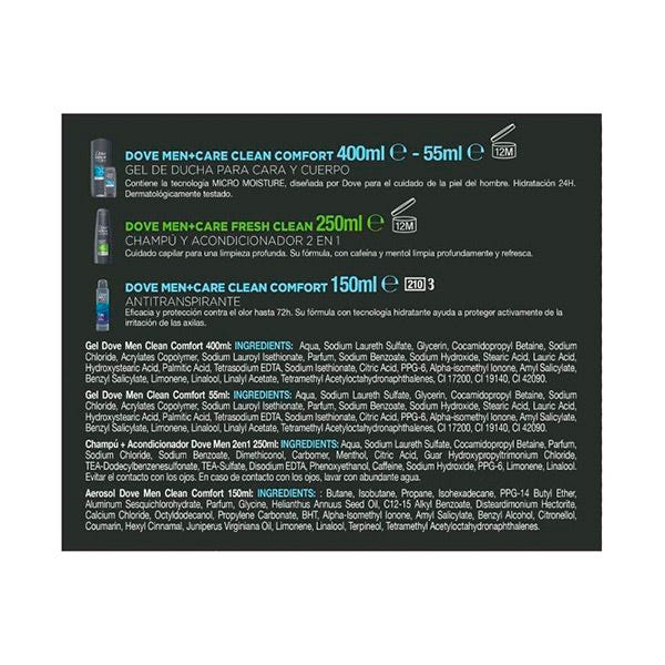 • Gel de Ducha Clean Comfort para Cuerpo y Cara 400ml & 55ml: Contiene la tecnología Micro-Moisture diseñada por Dove para el cuidado de la piel del hombre. Hidratación 24 horas. Dermatológicamente testado.