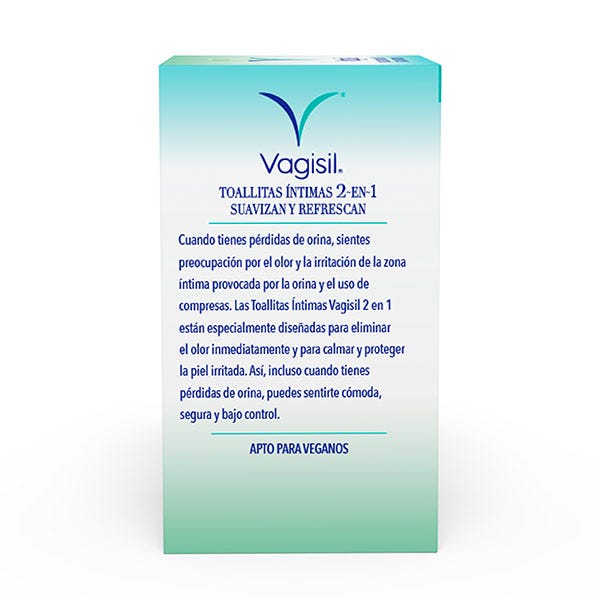 Vagisil Toallitas Íntimas 2 en 1 están especialmente diseñadas para eliminar el olor inmediatamente y para calmar y proteger la piel irritada.