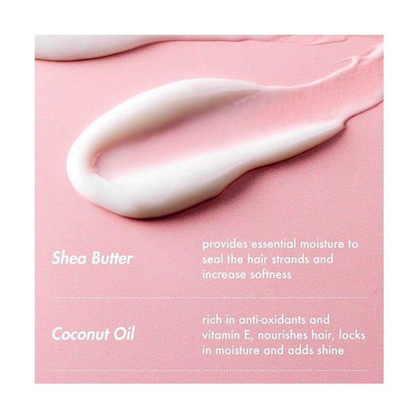 Water (Aqua), Cetearyl Alcohol, Hydroxyethylcellulose, Behentrimonium Chloride, Butyrospermum Parkii Butter, Hydroxypropyltrimonium Hydrolyzed Corn Starch, Benzyl Alcohol, Ceteareth-20, Cocos Nucifera Oil, Fragrance (Parfum), Isopropyl Alcohol, Citric Acid, Polyquaternium-11, Dehydroacetic Acid, Phenoxyethanol, Coumarin, Alpha-Isomethyl Ionone, Sodium Hydroxide, Linalool.