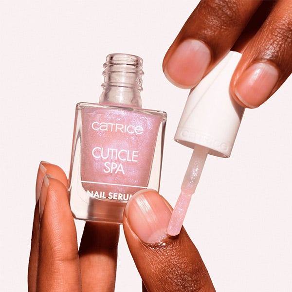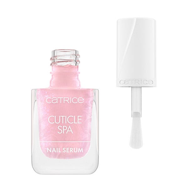 ¡Hola a unas uñas perfectamente mimadas! El sérum para uñas Catrice Cuticle Spa nutre en profundidad la lámina ungueal y las cutículas con una textura ligera y no pegajosa. Enriquecido con extracto de arándano, vitamina E, aceite de semilla de uva, glicerina y aloe vera, se absorbe rápidamente sin dejar residuos. Su fórmula rosa lechosa con partículas de purpurina lila y rosa llama la atención. El pincel fácil de usar permite una aplicación precisa sin goteos, ya sea sobre las uñas desnudas o sobre las cutículas mientras se lleva esmalte. Para cutículas nutridas y uñas de aspecto fuerte, ¡este sérum es tu favorito!