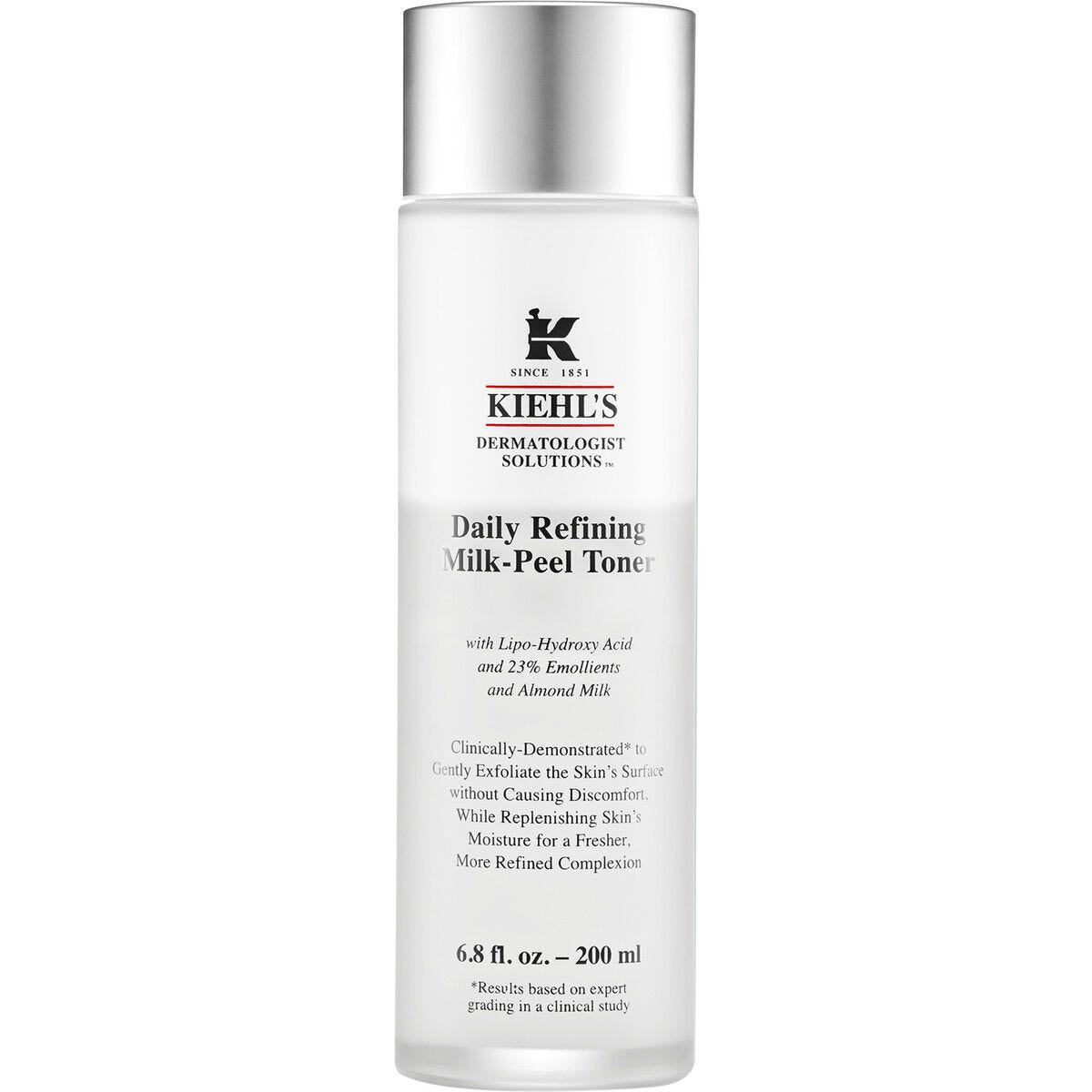 El tónico facial exfoliante Daily Refining Milk-Peel Toner de Kiehl´s aporta una sensación de confort a la piel exfoliándola de manera suave. Restaura la piel y aporta una sensación de hidratación intensa, suavizándola y dejándola luminosa. Perfecto para todo tipo de pieles, incluidas las pieles sensibles. Clínicamente testado.