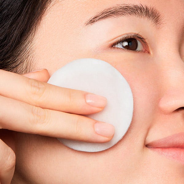 Desliza un disco de algodón suavemente humedecido con Daily Refining Milk-Peel Toner sobre la piel limpia y seca, evitando la zona del contorno de ojos.