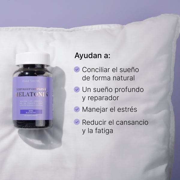 Nuestras gummies para el descanso son una combinación experta de 9 activos naturales que trabajan en sinergia para promover el bienestar general, manejar el estrés diario, mejorar la calidad del sueño y ayudar a conciliarlo más fácilmente. Están formuladas con Melatonina, que contribuye a reducir el tiempo necesario para conciliar el sueño; Ashwagandha Sensoril®, L-Teanina, GABA, Valeriana y Passiflora, activos que promueven la calma y relajación antes de dormir.