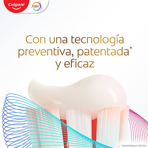 Además de limpiar los dientes, la tecnología preventiva, patentada² y eficaz de la pasta Colgate Total Prevención Activa Original ayuda con 8 problemas de salud bucal: