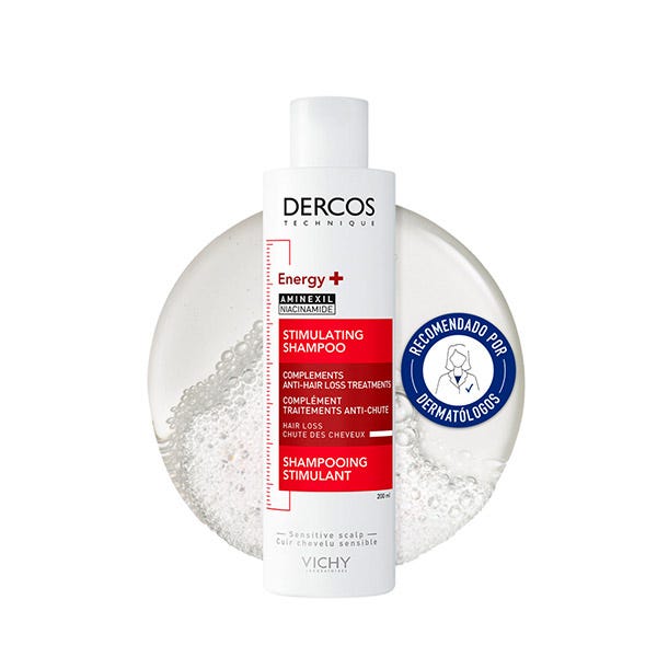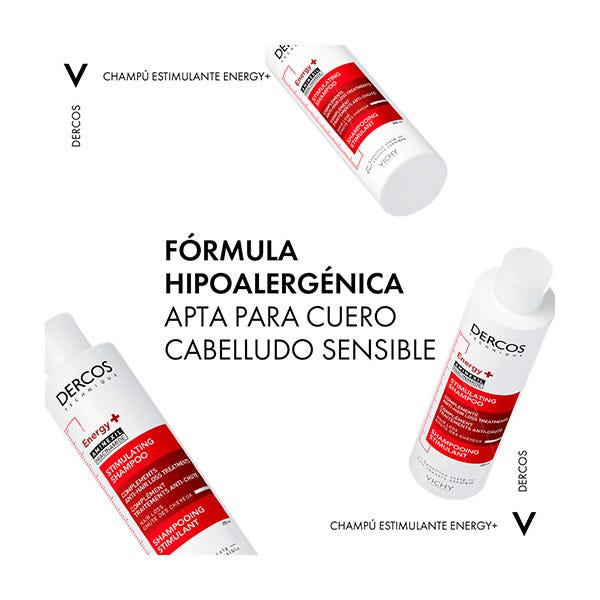 Dercos Technique Champú Estimulante Energy+ Efecto Estimulante 200ml de Vichy. Un champú estimulante para todo tipo de cabellos, enriquecido con la molécula anticaída de referencia Aminexil para ayudar a combatir la caída del cabello: