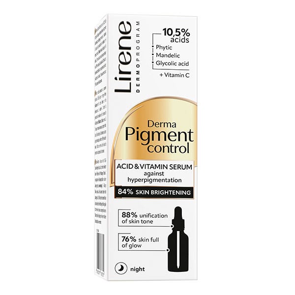 La fórmula enriquecida del sérum contiene un complejo ácido de alta concentración, que presenta potentes efectos iluminadores, antipigmentantes y rejuvenecedores. REGENERACIÓN: El sérum proporciona un efecto exfoliante multinivel, acelerando la regeneración e igualando el tono. Como resultado, el rostro luce radiante, suave al tacto y con un aspecto más joven. 3 % ÁCIDO MANDÉLICO: revitaliza y suaviza la piel. 7 % ÁCIDO GLICÓLICO: reduce la hiperpigmentación y las imperfecciones. 0,5 % ÁCIDO FÍTICO: regenera y ralentiza el envejecimiento. VITAMINA C: nutre, revitaliza y aporta luminosidad.