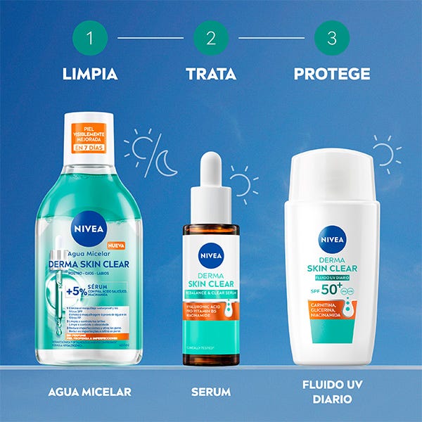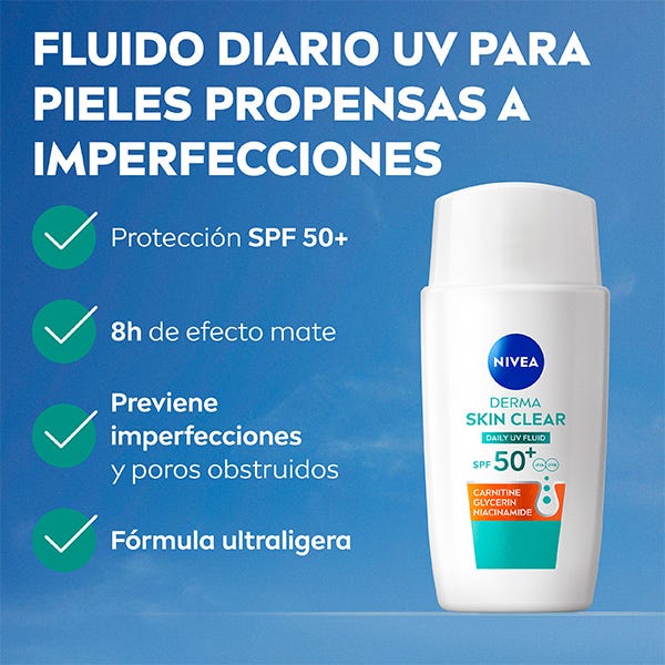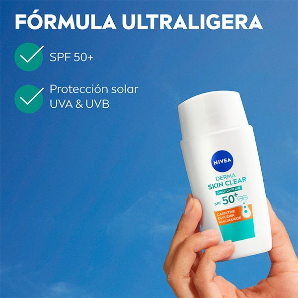 El Fluido Facial Derma Skin Clear FP50+ es un fluido ultraligero especialmente desarrollado para piel normal, grasa & con tendencia a las imperfecciones.