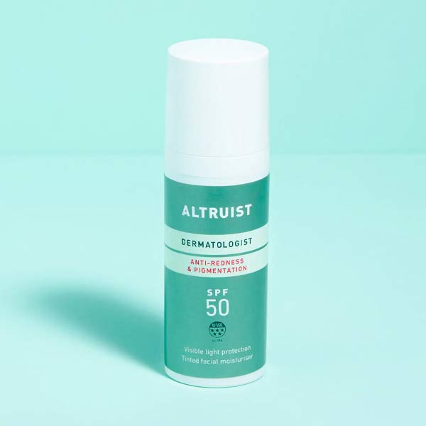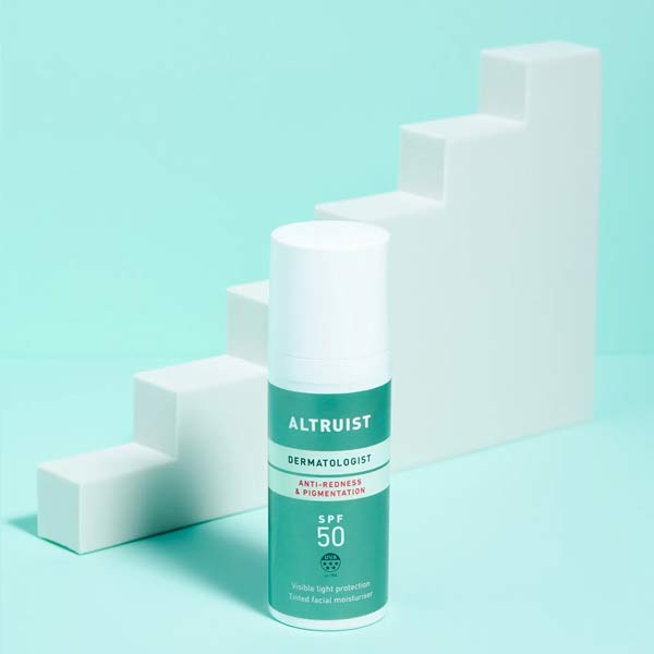 El protector Altruist Anti-Enrojecimiento y Pigmentación SPF50 está diseñado para aquellas personas con hipersensibilidad en la piel, como la rosácea, dermatitis o acné severo o para aquellos con tono de piel desigual o propensos a manchas de melasma/pigmentación o enrojecimiento de la piel.