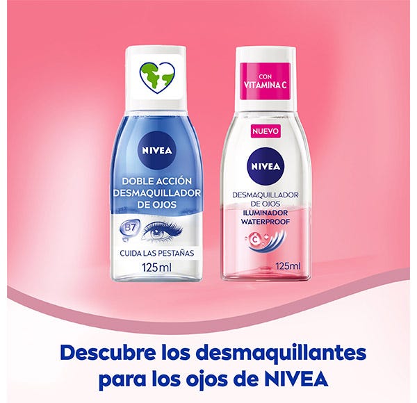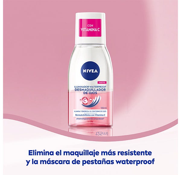 NIVEA Desmaquillador de Ojos Iluminador Vitamina C este desmaquillador bifásico elimina eficazmente el maquillaje y la máscara de pestañas waterproof, sin necesidad de frotar. Su fórmula con Vitamina C deja el contorno de ojos energizado y luminoso. El producto también es adecuado para usuarios de lentes de contacto. Aprobado dermatológica y oftalmológicamente.