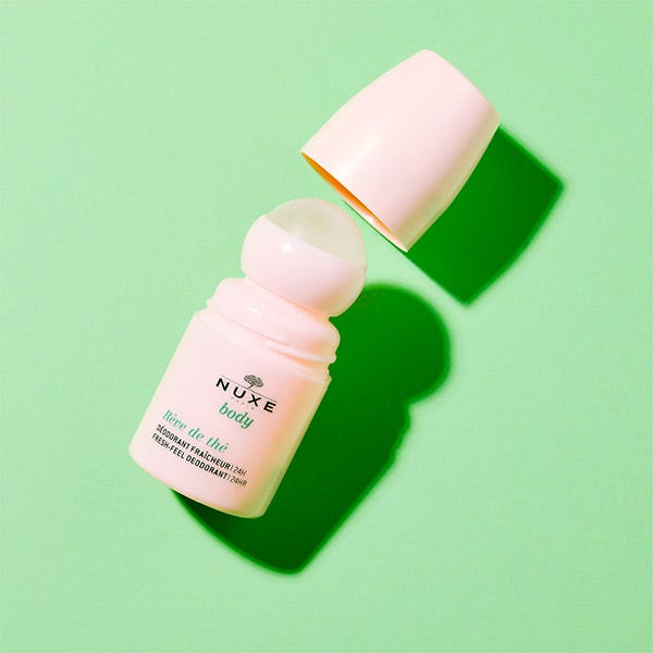 El desodorante ofrece un efecto refrescante en la aplicación para el 90 %** de las mujeres. Tratamiento formulado y fabricado en Francia.*Prueba clínica. ** Prueba de uso - 21 voluntarias. % de satisfacción inmediatamente después de la aplicación.
