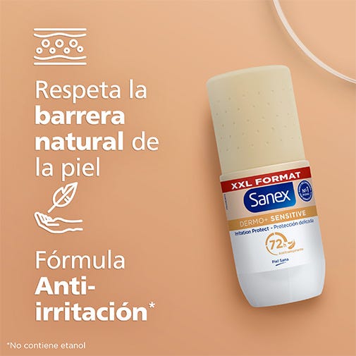 Afronta el día con confianza con el antitranspirante Sanex Dermo+ Sensitive Roll-On. Este antitranspirante de 72 horas te ofrece una protección efectiva y duradera contra el sudor y el mal olor, a la vez que su fórmula anti-irritación* cuida suavemente tu piel.