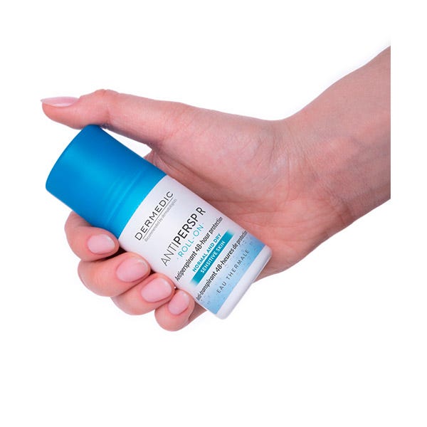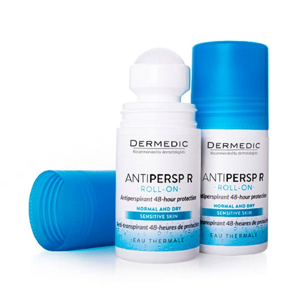 ANTIPERSP R Antitranspirante 48H con agua termal y alantoína, formulado para reducir y regular eficazmente la sudoración, proporcionando protección por 48 horas.