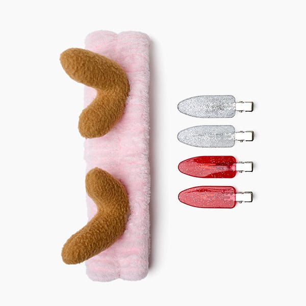 Descripción (ES): Mantén tu cabello fuera del rostro con este encantador set de diadema y clips. La diadema es suave y cómoda, mientras que los clips sujetan el cabello de forma segura sin dejar marcas. Ideal para tu rutina de maquillaje, cuidado facial o simplemente para un look divertido y práctico.