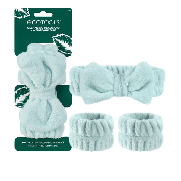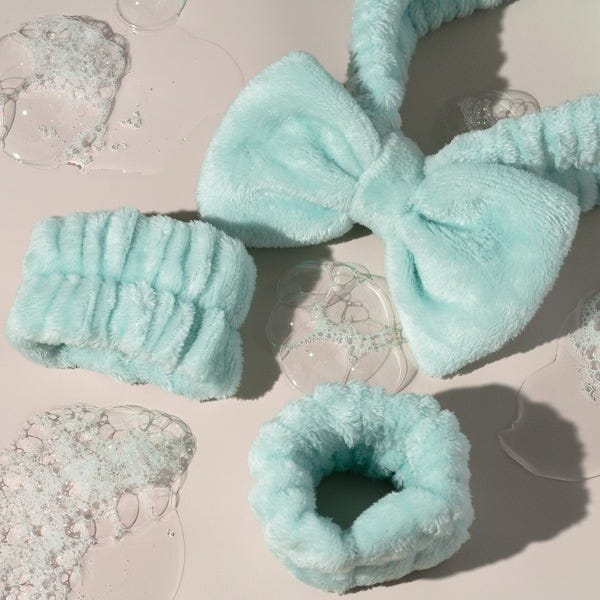Set de diadema y muñequeras, perfecto para tu rutina de maquillaje. La diadema mantiene tu cabello en su lugar mientras aplicas productos, y las muñequeras te ayudan a mantener tus muñecas secas, ¡todo con estilo y comodidad!