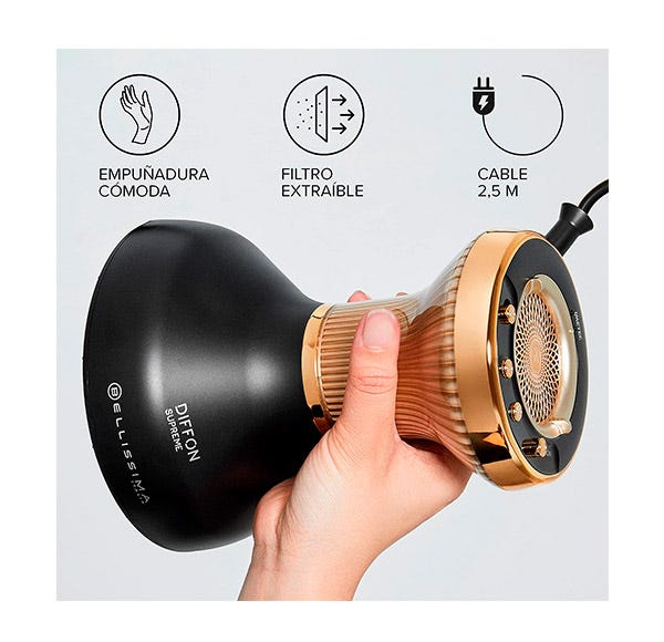 Difusor XL: para recoger una mayor cantidad de pelo y secarlo más rápidamente