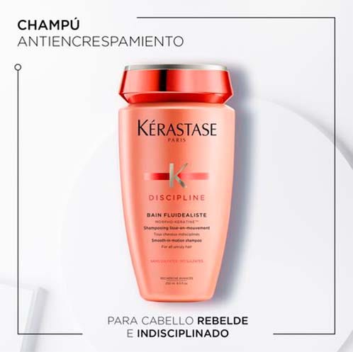 ¿Sufres en el cuarto de baño, pasas una eternidad delante del espejo con el peine en la mano y pruebas toda una variedad de productos, pero tu peinado desordenado todavía está lejos de ser el resultado que esperabas? El champú alisante para el cabello rebelde Kérastase Discipline Bain Fluidealiste no te decepcionará. Está diseñado exactamente a medida del cabello rebelde y difícil de peinar. En un instante lograrás por arte de magia el peinado que deseas y el resultado te encantará.