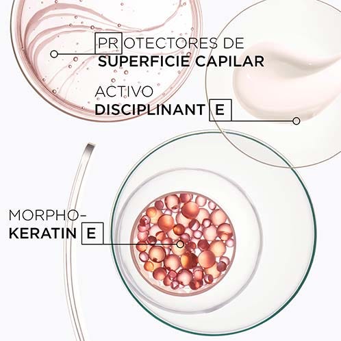• Recupera la uniformidad de la fibra capilar y la envuelve para aportar manejabilidad y protección antiencrespamiento.