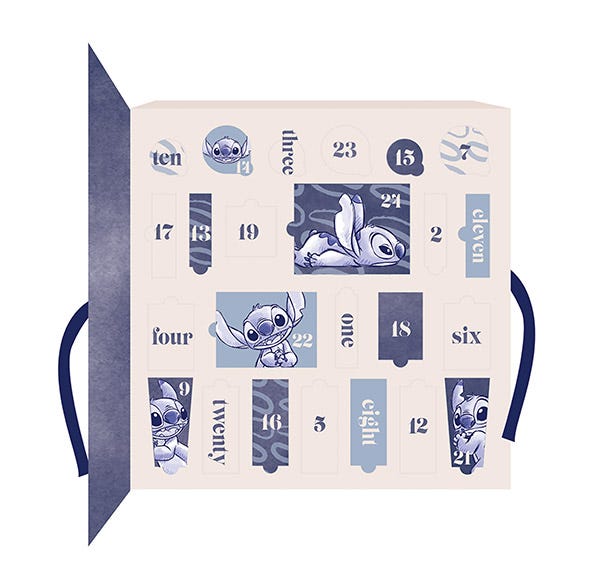 Cuenta atrás para Stitchmas con estilo con nuestro mágico calendario de adviento inspirado en Stitch de Disney, que incluye 24 deliciosos caprichos para el baño, el cuerpo y la belleza.