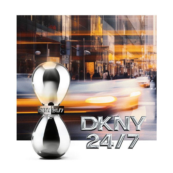 Inspirado por el espíritu de la ciudad y las personas que encarnan esa fuerza de Nueva York. DKNY 24/7 es un homenaje a quienes viven la vida sin límites, siempre dispuestos, siempre en movimiento. La botella en forma de reloj de arena simboliza el flujo continuo del tiempo en la siempre activa ciudad de Nueva York.