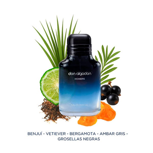 “When night falls, he emerges” Descubre la nueva fragancia Don Algodón Eau de Parfum Hombre Aromatic Fougère fresca. Una fragancia que captura el magnetismo de la noche mediterránea. Inspirado en la profundidad de su cielo estrellado, este perfume sucumbe a los sentidos con notas vibrantes de salidas: bergamota y grosella negra que se funden con la intensidad del benjuí y culminan en una sinfonía perfecta de vetiver y ámbar gris.