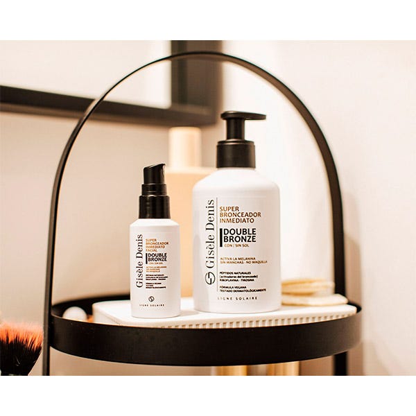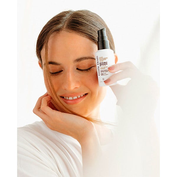 El Super Bronceador Inmediato Facial Double Bronze de Gisèle Denis genera y potencia el bronceado de forma natural proporcionando un tono dorado y uniforme en tu rostro. Su innovadora fórmula ejerce una doble acción sobre los melanocitos e incorpora activos que estimulan la síntesis de melanina para obtener un bronceado natural a partir de los cinco días de uso.