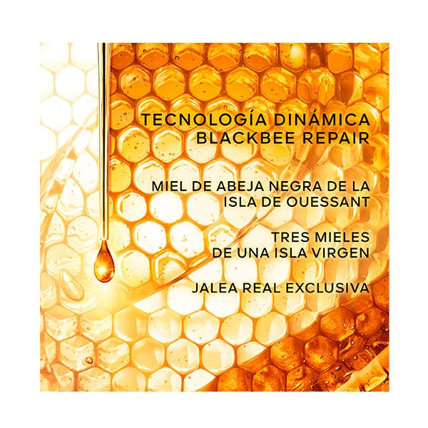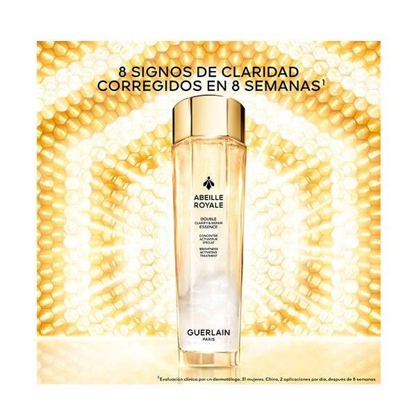 La Doble Esencia Clarify & Repair¹ combina el poder de dos tecnologías exclusivas para revelar la luminosidad juvenil de la piel: la tecnología Dynamic Blackbee Repair² y un potente concentrado activador de la luminosidad que combina el poder de la miel blanca, la vitamina C³ y los AHA. Estimulan respectivamente los mecanismos clave del proceso de reparación cutánea y aumentan la claridad de la piel. Día tras día, los poros se cierran, la piel se alisa y parece visiblemente más joven. La Doble Esencia Clarify & Repair¹ está formulada con un 93 % de ingredientes de origen natural⁴.