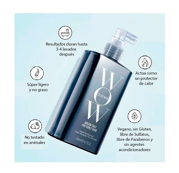 Consigue una textura suave y sedosa con el Spray Dream Coat Supernatural de Color WOW para Curly Hair, un spray sin silicona que, al mismo tiempo que combate el encrespamiento, controla los niveles de hidratación y suaviza cada fibra capilar.