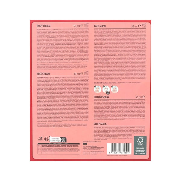 Con una variedad de productos para el cuidado que van desde un spray para almohada hasta una crema corporal y desde una crema de noche hasta una máscara para dormir, todos convenientemente empaquetados en un elegante neceser.