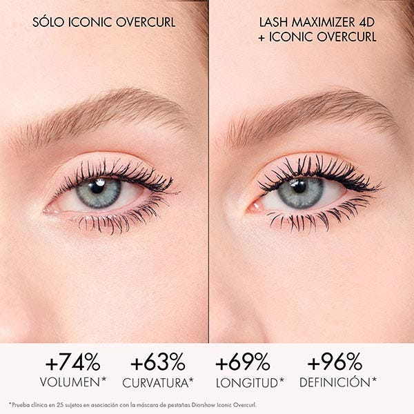 * Evaluación clínica con 25 sujetos en asociación con la máscara Diorshow Iconic Overcurl.