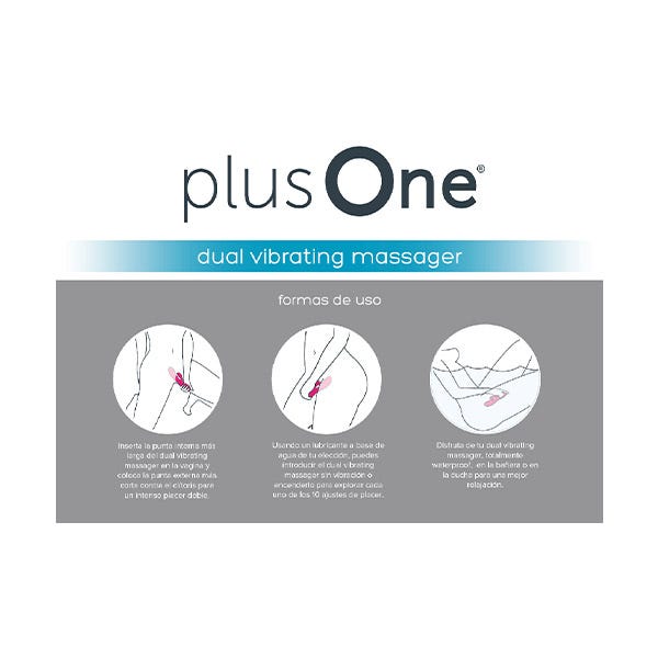 Usando un lubricante a base de agua de tu elección, puedes introducir el masajeador vibratorio doble sin vibración o encenderlo para explorar cada uno de los 10 ajustes de placer.