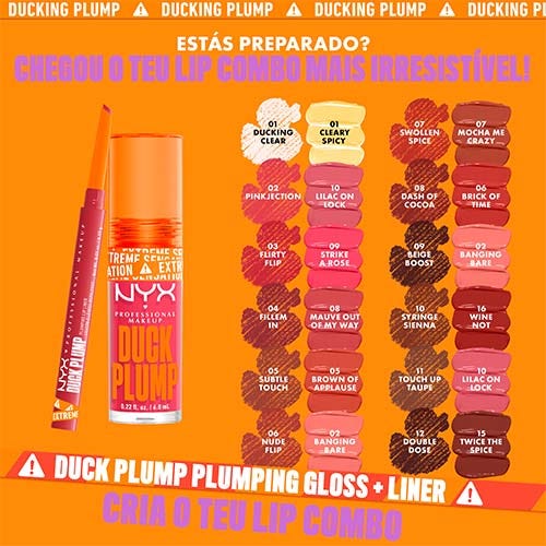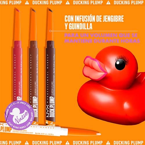 Prepárate para esto, ¡porque lo hemos vuelto a hacer DUCKING! ¡La familia Duck Plump se vuelve PLUMPER! ¡Nuevo perfilador de labios EXTREME Plumping! Doce nuevos delineadores picantes para unos labios DUCKING Plump en todos tus tonos favoritos. Desde los tonos nude de todos los días hasta los rosas, rojos y marrones, ¡tenemos el tono ideal para ti! Además, este delineador tiene un aplicador único que no querrás perderte. Diseñado con una punta de precisión de doble filo para una aplicación fácil en todo momento. Delinea con la punta de precisión para obtener líneas nítidas y limpias, y utilice el borde plano para perfilar y acentuar las comisuras interiores y conseguir unos labios perfectos. ¡Este perfilador lo hace todo! Formulado con el mismo jengibre picante y pimiento que nuestro Duck Plump High Pigment Plumping Gloss.