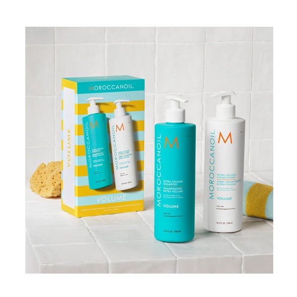 Disfrute del champú y acondicionador volumizante en un lote que, además de tener un precio especial, con infusión de aceite de argán nutritivo, revitaliza y rellena el cabello para devolverle cuerpo, movimiento y brillo.