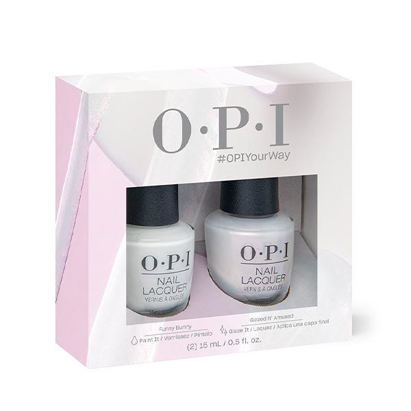 Lo icónico se une a lo fascinante con este dúo de Nail Lacquer. ¿Funny Bunny, una base blanca suave y clásica, combinado con Glazed N' Amused, un esmalte transparente perlado? Sí, por favor. ¡Crea un look totalmente personalizado que nos gusta llamar Glazed Bunny! Es pura genialidad brillante.