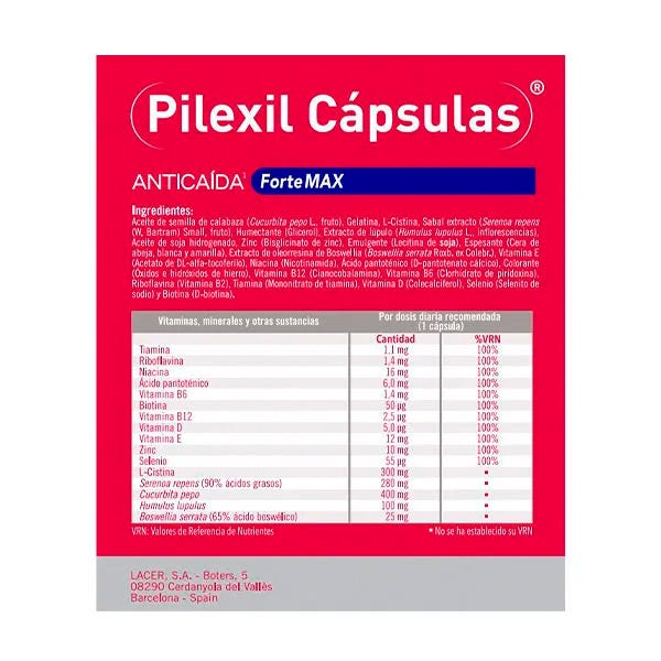 Pilexil Cápsulas Forte Max es un complemento alimenticio que frena la caída acelerada del cabello en la fase de crecimiento, alargando el ciclo de vida capilar.