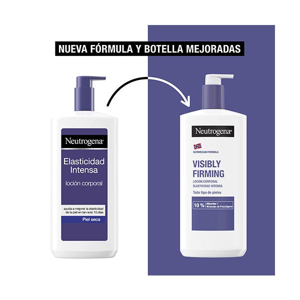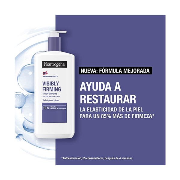 Neutrogena Loción Visiblemente Reafirmante para el cuidado corporal, contiene Glicerina y Minerales de Procolágeno para una piel más suave y firme.