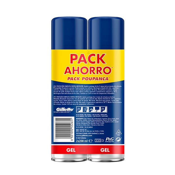 Gillette Series Gel De Afeitar Refrescante Con Eucalipto Para Hombre, Para Piel Sensible, Protección Total Ante La Irritación, Ayuda A Proteger Contra Cortes, Ardor, Escozor, Enrojecimiento Y Tirantez, Pack 2x 200ml (Total 400ml).