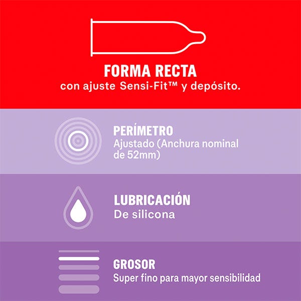 Este preservativo está hecho de látex de caucho natural, el cual puede causar reacciones alérgicas en alérgicos al látex. Deja de usarlo si sientes molestias o irritación al usarlo. Utiliza cada preservativo una sola vez y procura utilizar únicamente lubricantes que estén recomendados para ser usados con preservativos.