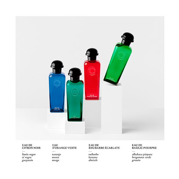 La colección de colognes de Hermès, un terreno de juego infinito y virtuoso, explora la sensorialidad de las materias primas. Es un signo de placer inmediato y generoso, que aúna más allá de géneros, modas, edades y temporadas.